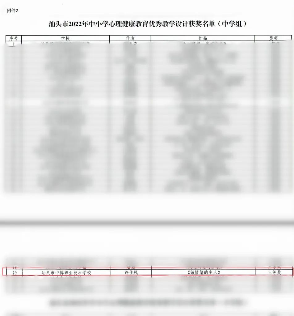 近日,汕頭市2022年中小學心理健康教育優(yōu)秀教學設計評選活動結果揭曉,經(jīng)過各地各校自下而上、層層評選、擇優(yōu)推薦,我校許佳鳳老師獲得心理健康教育優(yōu)秀教學設計(中學組)三等獎。